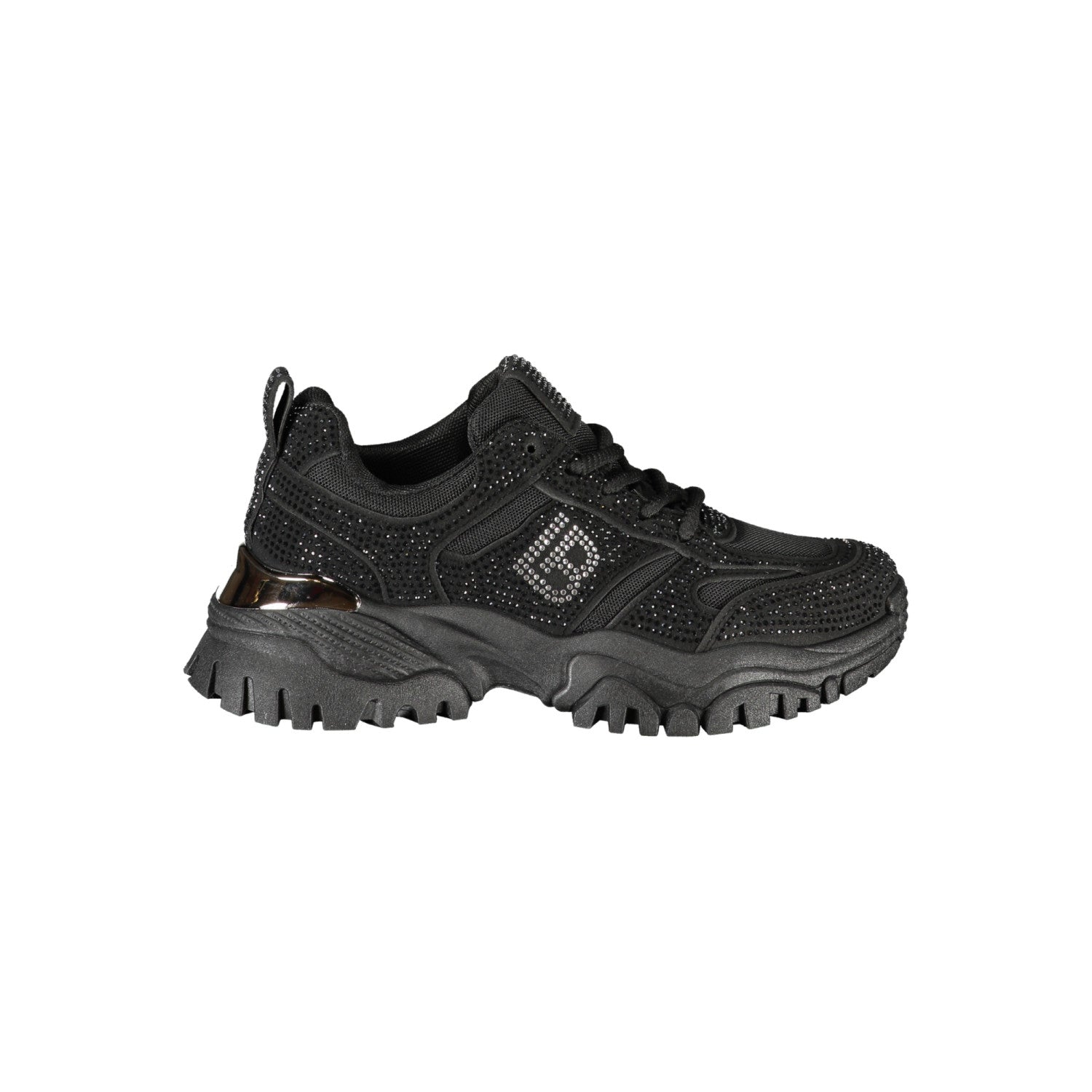 Step up your style with these sporty lace-up sneakers featuring refined contrasting details and sparkling rhinestone appliqués that add a touch of glamour to any outfit. Designed with a sleek silhouette and enhanced by a subtle logo accent, these shoes perfectly blend comfort and sophistication.