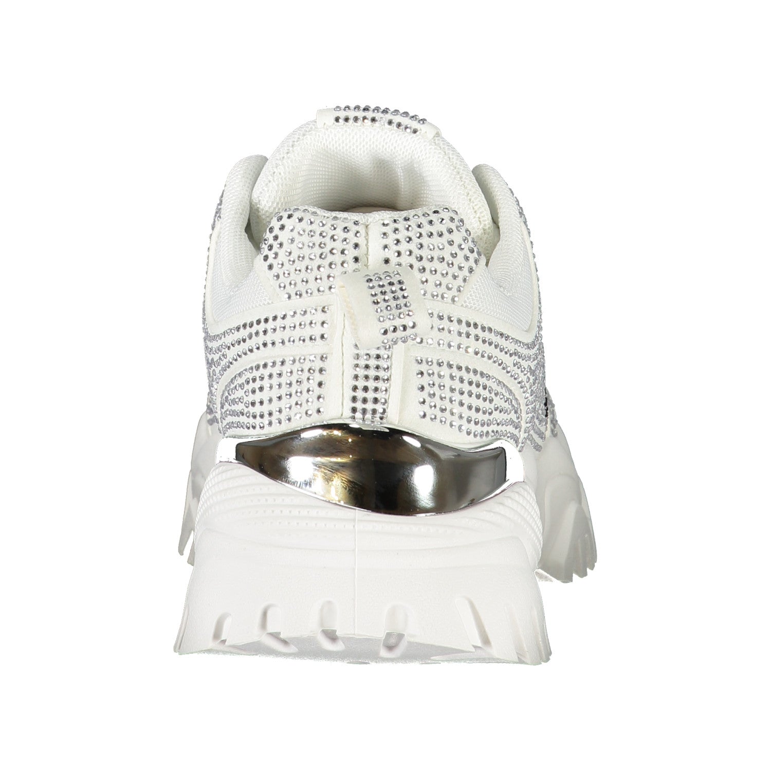 Step up your style with these sporty lace-up sneakers featuring refined contrasting details and sparkling rhinestone appliqués that add a touch of glamour to any outfit. Designed with a sleek silhouette and enhanced by a subtle logo accent, these shoes perfectly blend comfort and sophistication.